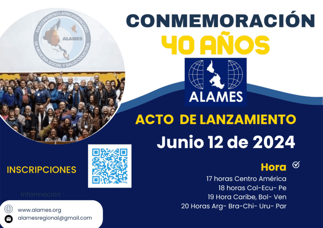 A Associação Latino-Americana de Medicina Social (Alames) celebra 40 anos nesta quarta-feira, 12/6. As comemorações incluem o lançamento de convocatória para apresentação de propostas analíticas e críticas que auxiliem na compreensão de sua trajetória e itinerário a se seguir nas próximas décadas. Acesse o link para as inscrições: https://bit.ly/3yyZcfq