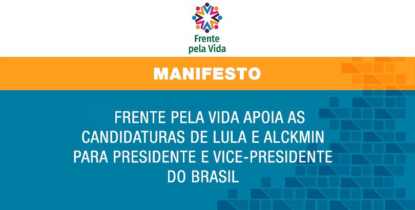 A Frente pela Vida apoia as candidaturas do Lula e Alckmin para presidente e Vice-presidente do Brasil