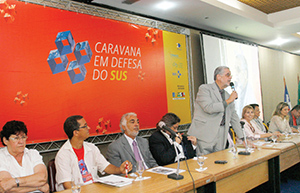 Nos últimos anos, inúmeras manifestações públicas em defesa do SUS foram realizadas. Acima, ato em Salvador, em 2009, com a presença, dentre outros, de Francisco Batista, presidente do Conselho Nacional de Sáude (CNS), e do secretário de saúde da Bahia, Jorge Solla