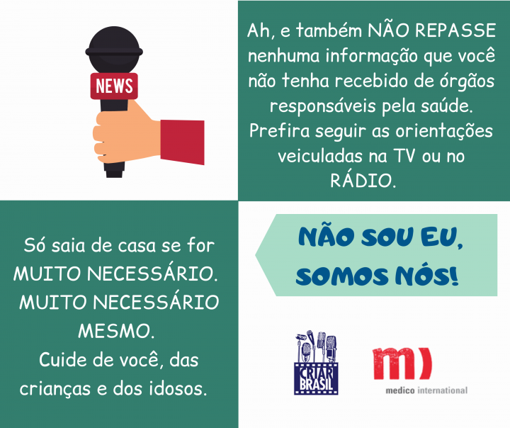 Veja abaixo as peças gráficas e divulgue (com os devidos créditos)! A seguir, ouça a dica da Angela sobre proteção contra o coronavírus.