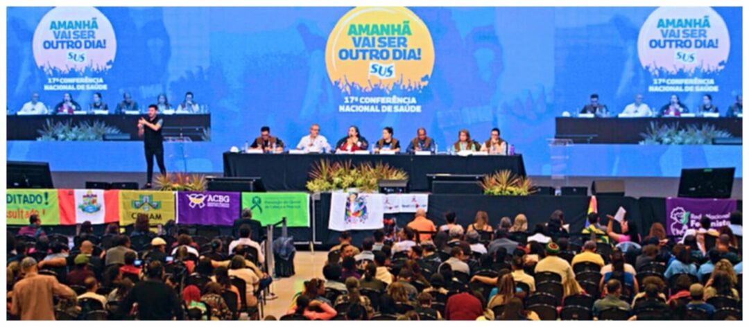 Segundo: tais medidas são opostas às diretrizes aprovadas por 4.048 delegados e delegadas na histórica 17ª Conferência Nacional de Saúde, ocorrida em Brasília, de 2 a 5 de julho de 2023 (foto abaixo).
