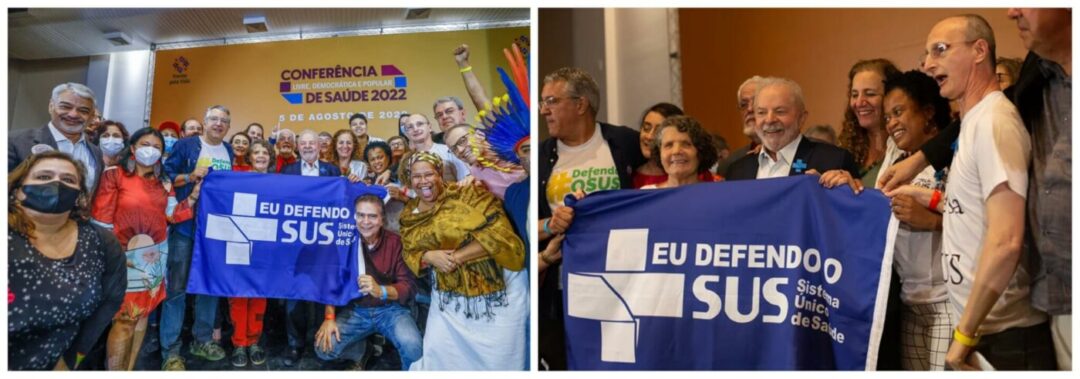 À esquerda, 5 de agosto de 2022, Conferência Livre, Democrática e Popular de Saúde, que aconteceu em São Paulo.