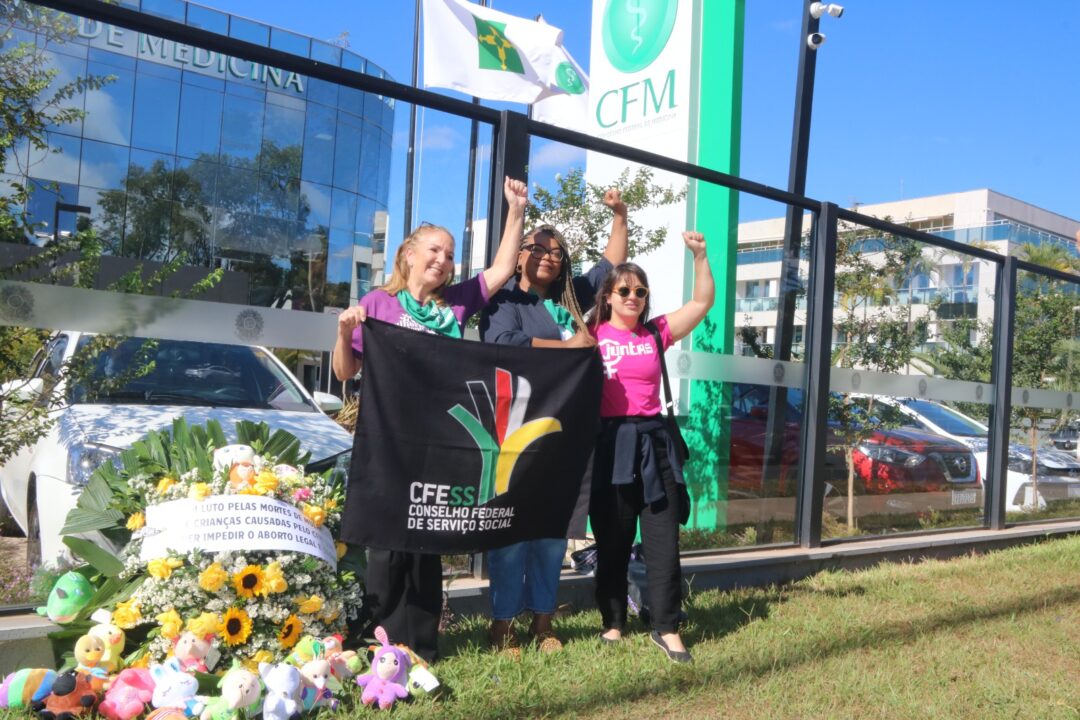O Conselho Federal de Serviço Social (CFESS) também marcou presença no ato, destacando o papel das profissionais no encaminhamento e acompanhamento integral das vítimas de violência. “O que Conselho de Medicina está fazendo é um absurdo, eles estão sobrepujando a legalidade, eles estão sobrepujando as leis brasileiras”, afirmou a representante, Maria Elisa Braga. “Como encaminhar as mulheres se os serviços estavam fechados?”
