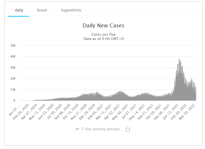 As mortes globais por COVID19 decaíram à metade do pico inicial da 1ª onda em abril de 2020 após terem subido ao dobro em janeiro e fevereiro de 2022.