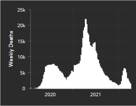As mortes indicam que a COVID19 “mais leve” da variante Ômicron matou cerca de 28% do maior pico de mortes em 2022 e quase tanta gente quanto matou o primeiro pico de mortalidade elevada em maio de 2021. A morte não foi tão “leve” quanto divulgaram os políticos e a mídia em geral que induziu à abertura geral e ilimitada dos serviços públicos e atividades sociais sem máscaras, com vacinação lenta e exclusão de público deliberadamente exposto, vulnerável no trabalho e por falta de recomendação de barreiras.