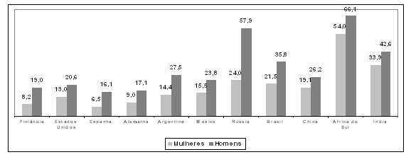 Probabilidade de não atingir os 65 anos de idade – Dados em porcentagem para 2003
