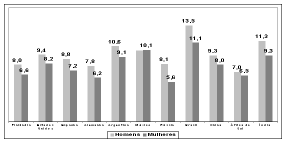 Perdas de anos de vida saudáveis em países selecionados (2003)