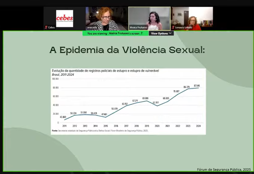 A socióloga e vice-presidenta do Cebes, Lenaura Lobato, reafirmou o compromisso histórico da entidade com os direitos das mulheres, com o feminismo e com a defesa da saúde como direito universal. “Temos muito orgulho de dizer que o Cebes é uma das entidades formuladoras da proposta constitucional da defesa do direito universal à saúde na Constituição de 1988, e o direito das mulheres sempre esteve presente muito fortemente em nossa pauta.”