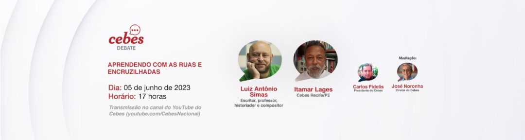 As ruas, como vistas por Luiz Antonio Simas, incorporam o movimento. São terreiros de encontros improváveis, território de Exu, que se manifesta na alteridade da fala e na afluência das encruzilhadas. Para conversar sobre como reinventar afetos, aprender a gramática dos tambores, sacudir a vida para que surjam frestas. Para que corpos amorosos, corpos de festa e de luta se lancem ao movimento e jamais deixem de ocupar a rua para construir um Brasil que nunca existiu, o Cebes Debate conversa na próxima segunda-feira, dia 5 de junho com o professor, historiador, compositor e escritor Luiz Antonio Simas, autor do livro “O corpo encantando das ruas“, entre outros.