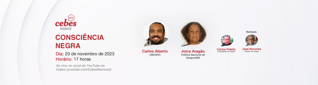 No dia 20 de novembro, data da morte de Zumbi dos Palmares, celebra-se o “Dia Nacional da Consciência Negra. Para conversar sobre o significado e importância dessa data, o Cebes Debate recebe nessa próxima segunda-feira, dia 20 de novembro, às 17:00hs, Carlos Alberto Silva Junior, advogado, da Direção Nacional da União de Negras e Negros pela Igualdade – UNEGRO e Joice Aragão, médica, militante da luta antirracista e atualmente Coordenadora da Política Nacional de Sangue e Hemoderivados do Ministério da Saúde. Carlos Fidelis, Presidente do Cebes, abre a conversa, que será mediada por José Noronha.