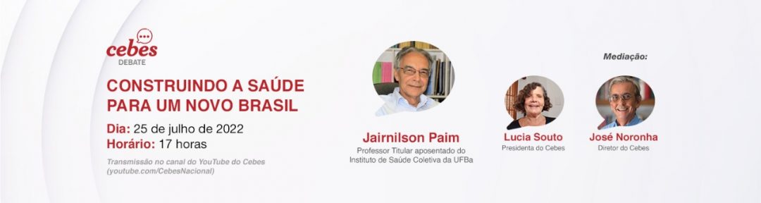 O professor Jairnilson Paim é o convidado do próximo programa Cebes Debate. Ele vai conversar com José Noronha e Lúcia Souto sobre os temas centrais da saúde a serem enfrentados na construção de um novo Brasil, democrático, soberano e justo. Participe você também pelo canal do Cebes no Youtube