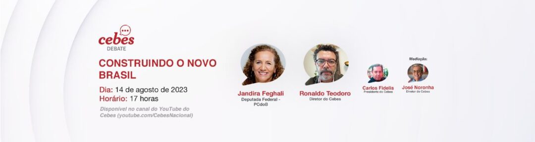 O Brasil inaugura uma nova época em 2023. Derrota o obscurantismo, o atraso, a necropolítica, o negacionismo e a disseminação da violência. Com a eleição de Lula, novos horizontes se abrem para as brasileiras e brasileiros. Tempo para construir um novo país. Para conversar sobre nosso futuro o Cebes Debate recebe a Deputada Jandira Feghali do PCdoB na segunda-feira, dia 14, às 17:00hs. Ronaldo Teodoro, professor do Instituto de Medicina Social da UERJ e Diretor do Cebes, participa da conversa. Carlos Fidelis, Presidente do Cebes abre o debate, mediado por José Noronha.