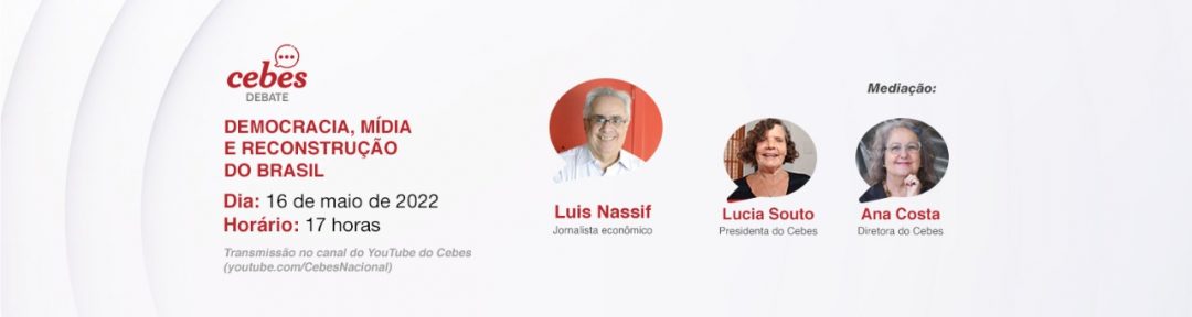 A chamada grande mídia, controlada por fortes grupos econômicos, sempre desempenhou um papel estratégico na pavimentação dos sucessivos golpes contra a frágil democracia brasileira. Nas últimas décadas, vimos surgir uma mídia alternativa ocupando espaços cada vez maiores nas redes sociais e portais de notícias dos mais variados matizes, num contraponto vigoroso contra a mídia hegemônica. O Cebes Debate conversa com o jornalista Luis Nassif sobre os desafios da reconstrução do Brasil diante desta mídia que sempre atuou ao lado do poder dominante e golpista. Nesta segunda-feira, dia 16 de maio, 17h, no canal do youtube do Cebes.