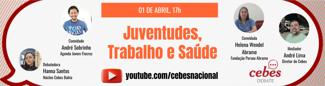 Cebes Debate “Juventudes, Trabalho e Saúde”, 01 de Abril, às 17h no canal do YouTube do Cebes.