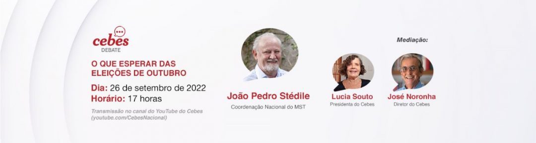Estamos diante de um momento crucial para escolher que pais queremos. O Brasil se mobiliza para construir uma vitória inconteste de Lula no primeiro turno das eleições. O Cebes Debate desta segunda-feira reforça a convocação na reta final dessa caminhada histórica em defesa da democracia, direitos, dignidade. Nosso convidado é o economista João Pedro Stédile, um dos coordenadores nacionais do MST e ativista histórico pela reforma agrária. Nesta segunda-feira, (26) às 17h, no Canal do Cebes no YouTube.
