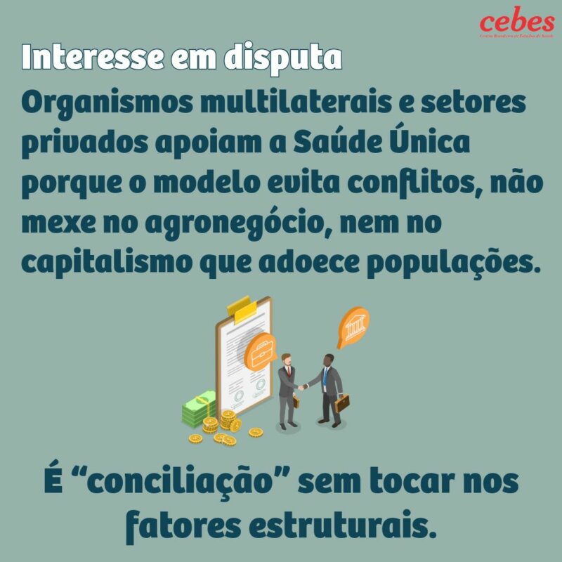 ”Organismos multilaterais e setores privados apoiam a Saúde Única porque o mdelo evita conflitos, não mexe no agronegócio nem no captitalismo que adoece populações”, acrescenta.