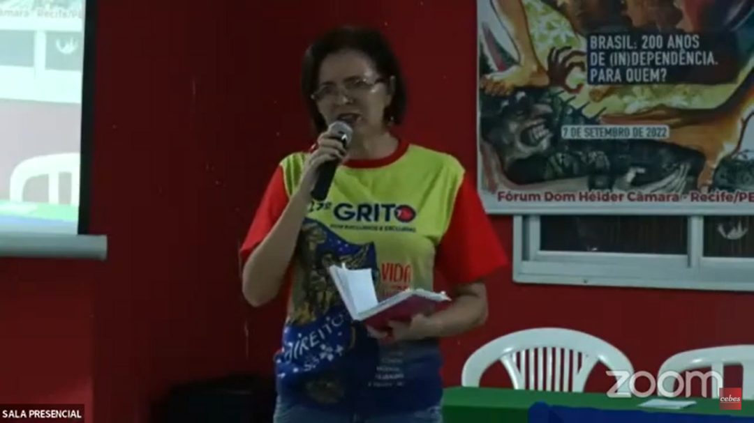 A Mesa de Abertura foi constituída por Marcionita Batista (MTC), Sandra Andrade (Coordenação Estadual do Grito dos Excluídos), Vera Barone (Uialá Mukaje), e Bernadete Antunes (Cebes).