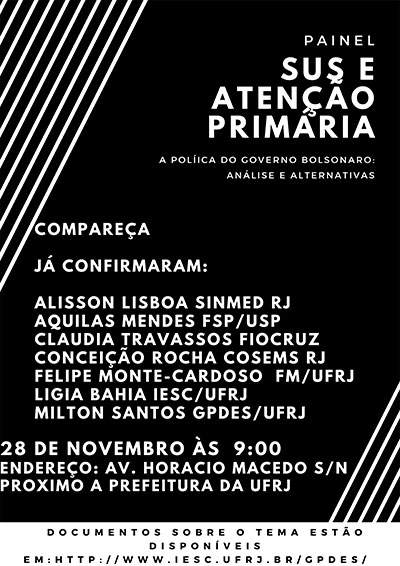 Painel sobre SUS e Financiamento da APS – a política do governo Bolsonaro: Análise e Alternativas