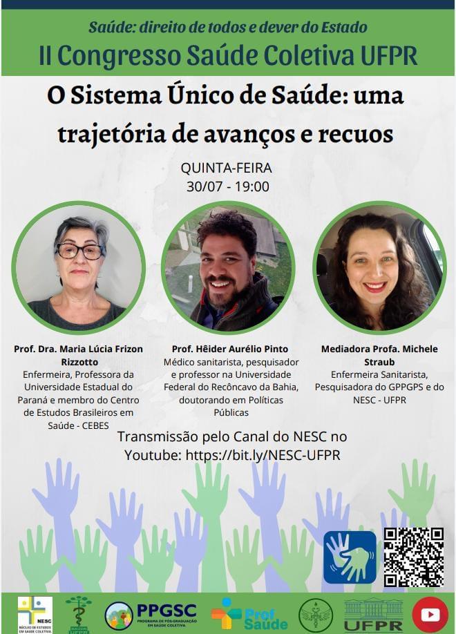 Painel “O Sistema Único de Saúde: uma trajetória de avanços e recuos” no II Congresso Saúde Coletiva UFPR