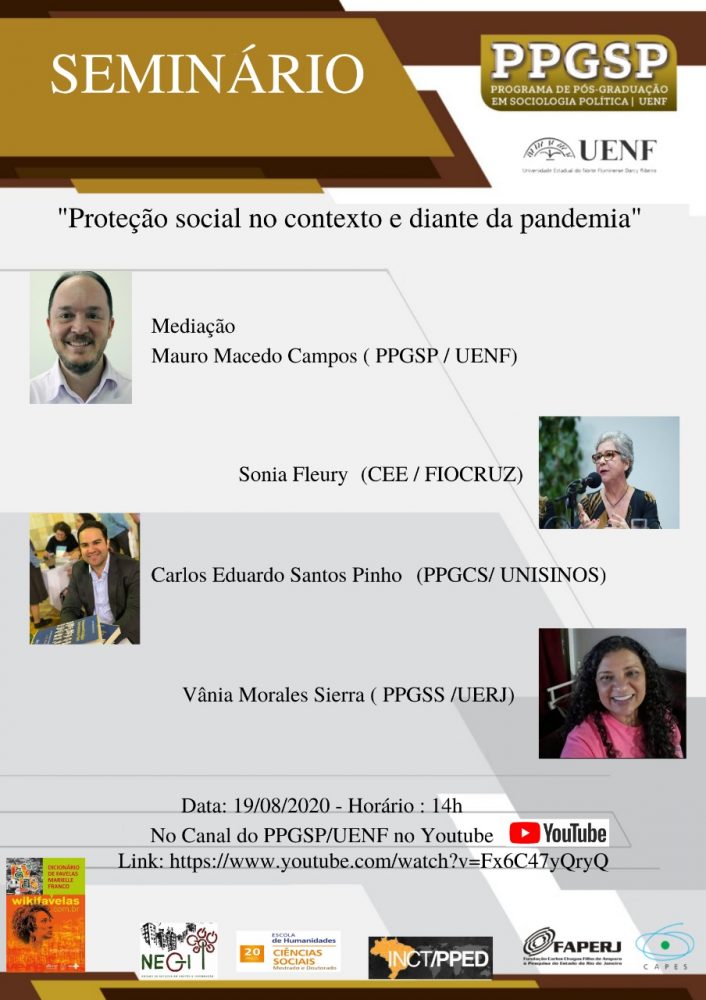 O Programa de Pós-Graduação em Sociologia Política (PPGSP) da Universidade Estadual do Norte Fluminense Darcy Ribeiro (UENF) promove nessa quarta-feira (19) às 14h o seminário virtual “Proteção social no contexto e diante da pandemia”, com a participação da cebiana Sônia Fleury.