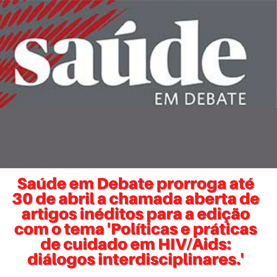 mar 24 2022 Prorrogada até 30/04/2022 a chamada de artigos para número especial da Saúde em Debate ‘Políticas e Práticas de Cuidado em HIV/AIDS: Diálogos Interdisciplinares’