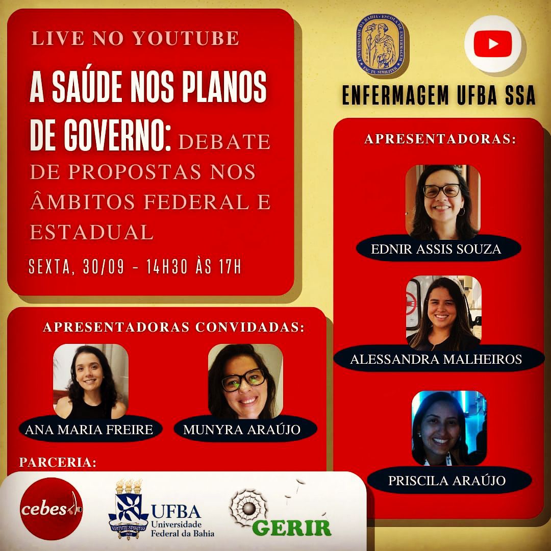set 22 2022 Núcleo Bahia do Cebes com GERIR-UFBA promovem ‘Saúde nos planos de governo: debate de propostas nos âmbitos federal e estadual’