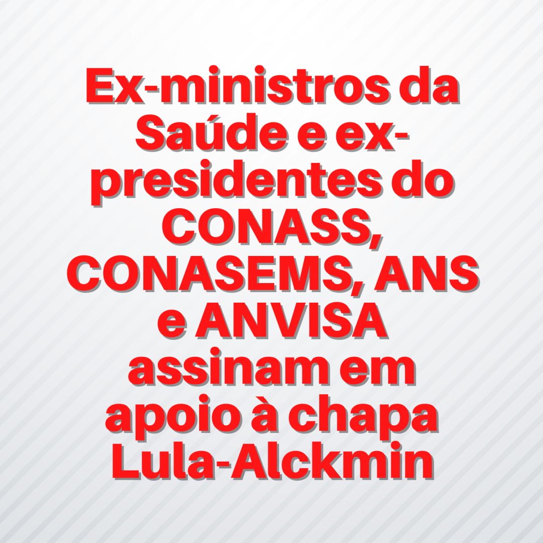 out 18 2022 Ex-ministros da Saúde e ex-presidentes do CONASS, CONASEMS, ANS e ANVISA assinam Manifesto em apoio à chapa Lula-Alckmin