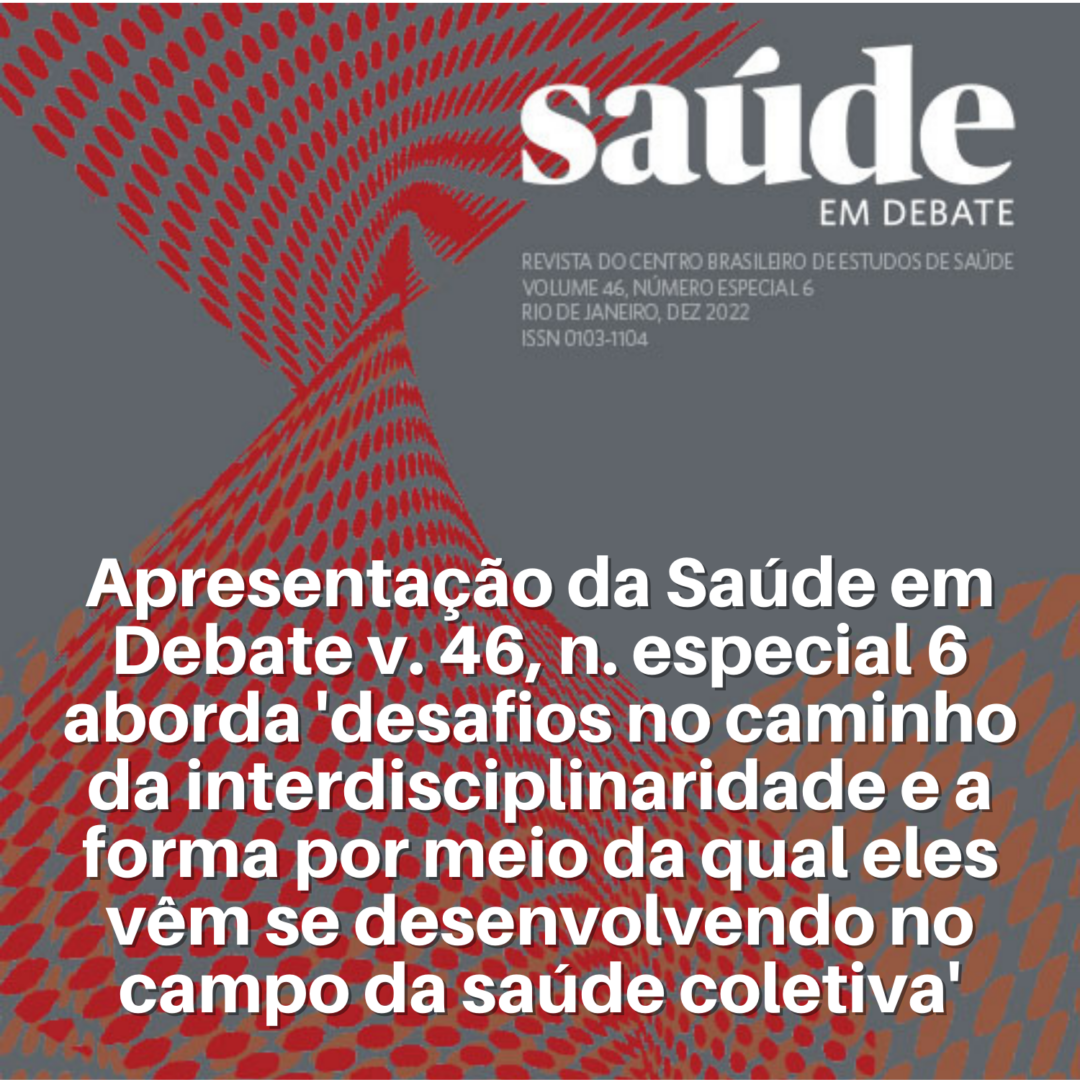 dez 15 2022 Apresentação da Saúde em Debate v. 46, n. especial 6 aborda ‘desafios no caminho da interdisciplinaridade’