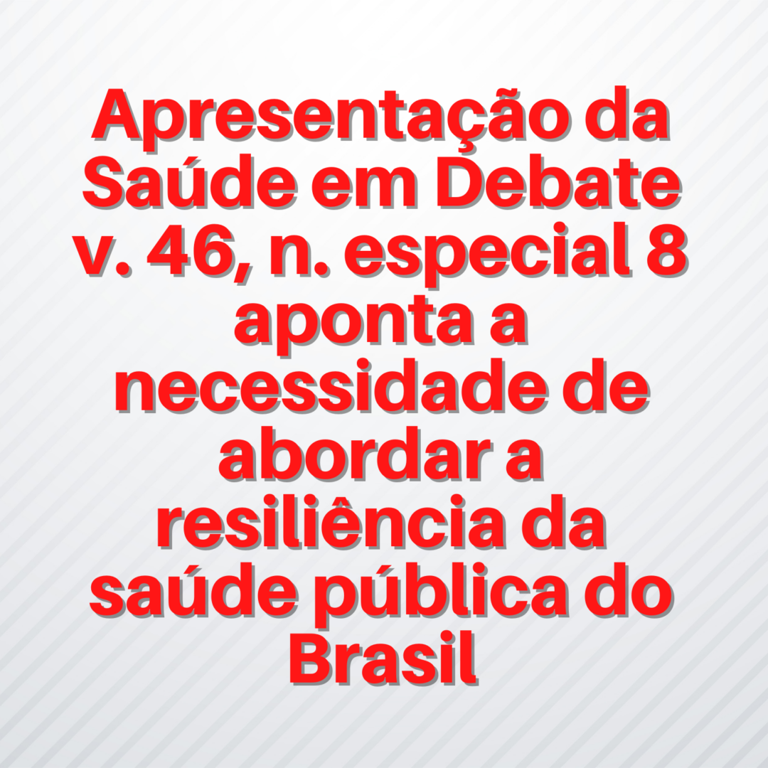 mar 28 2023 Apresentação da Saúde em Debate volume 46, número especial 8 aponta a necessidade de abordar a resiliência da saúde pública do Brasil