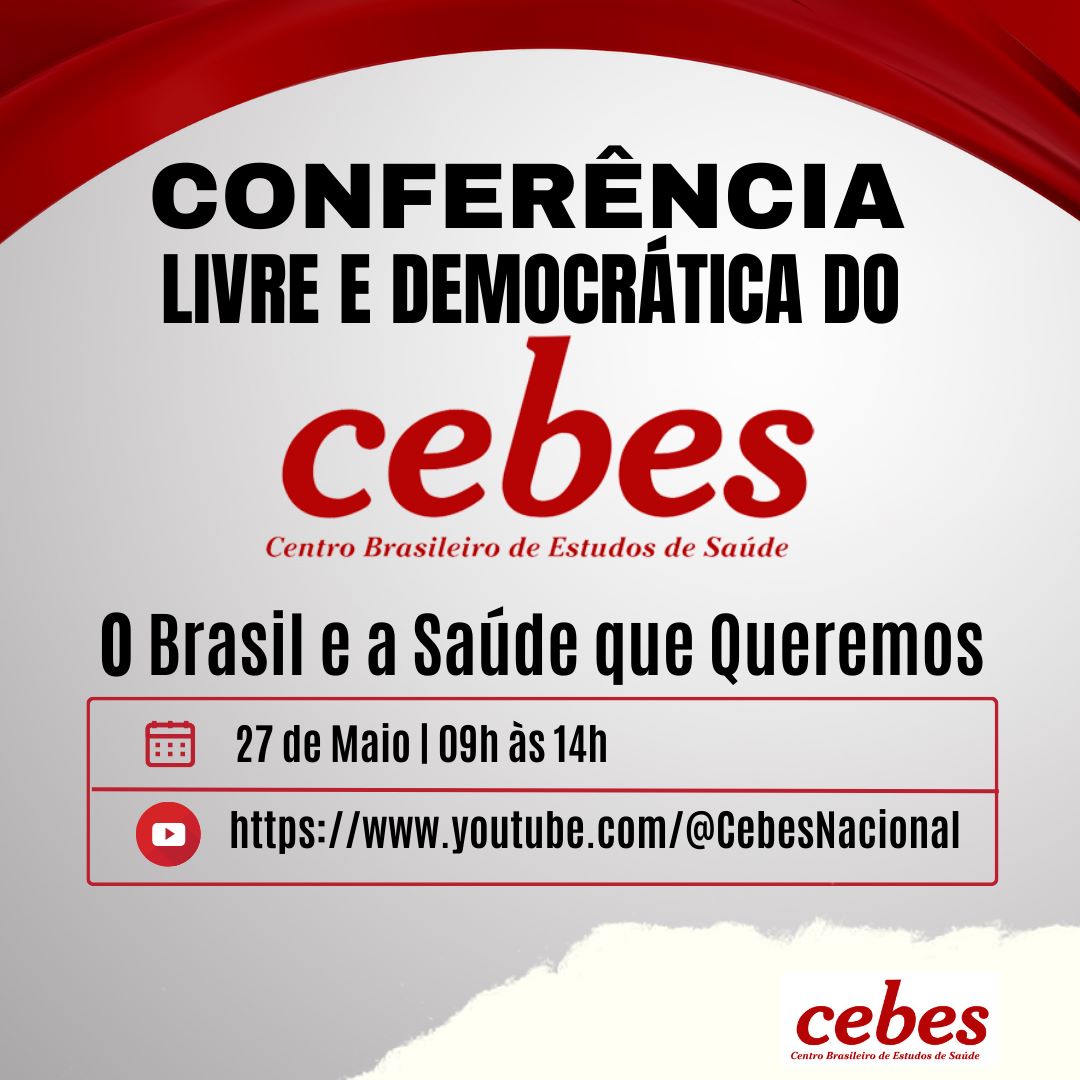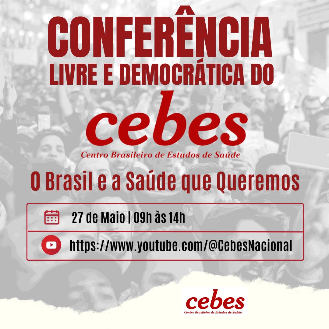 abr 28 2023 Cebes promove no dia 27 de maio a Conferência Livre e Democrática: o Brasil e a Saúde que queremos