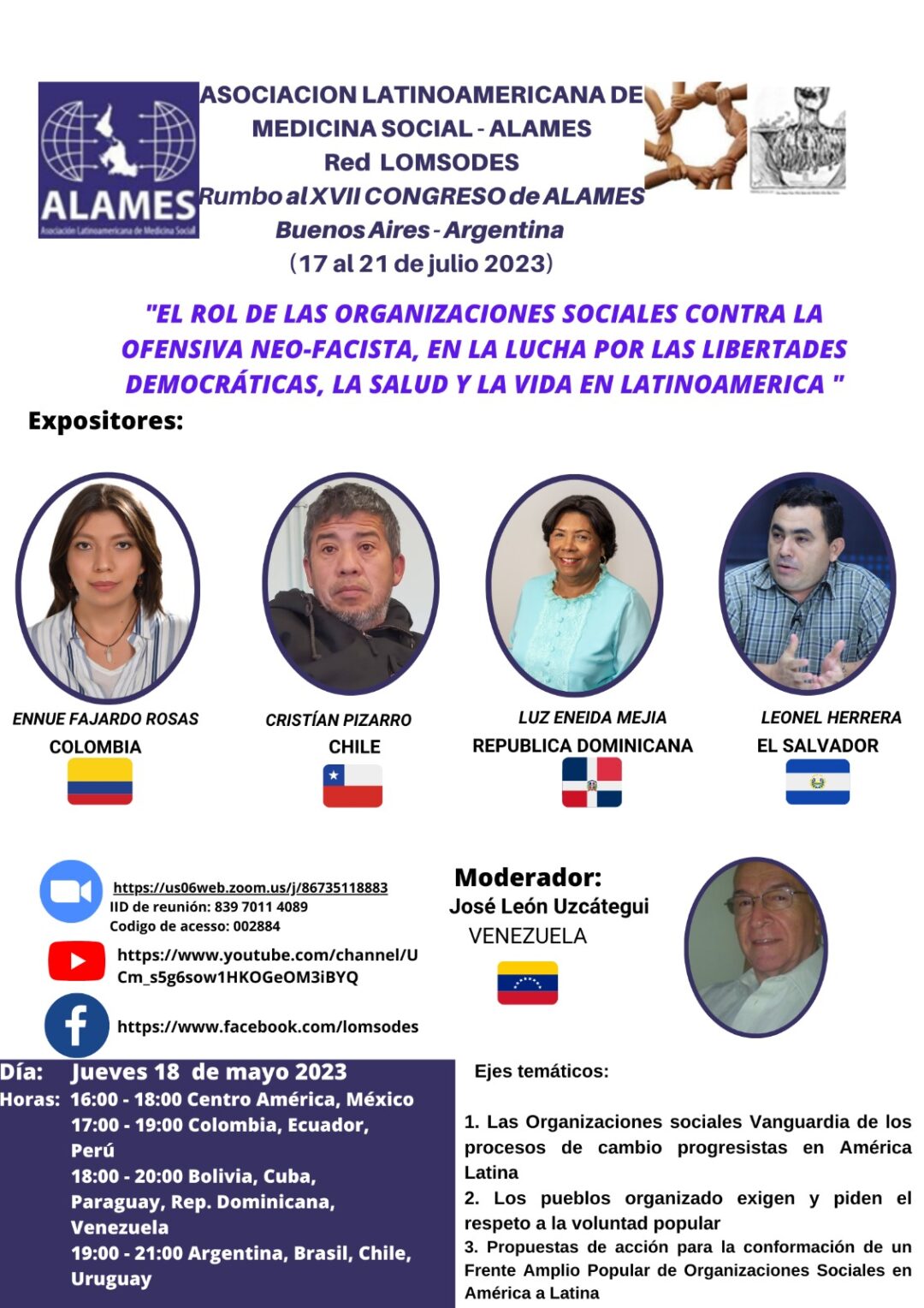 maio 18 2023 Conversatorio Alames: ‘El Rol de las organizaciones sociales contra la ofensiva neo-facista, en la lucha por las libertades democráticas, la salud y la vida en latinoamerica’