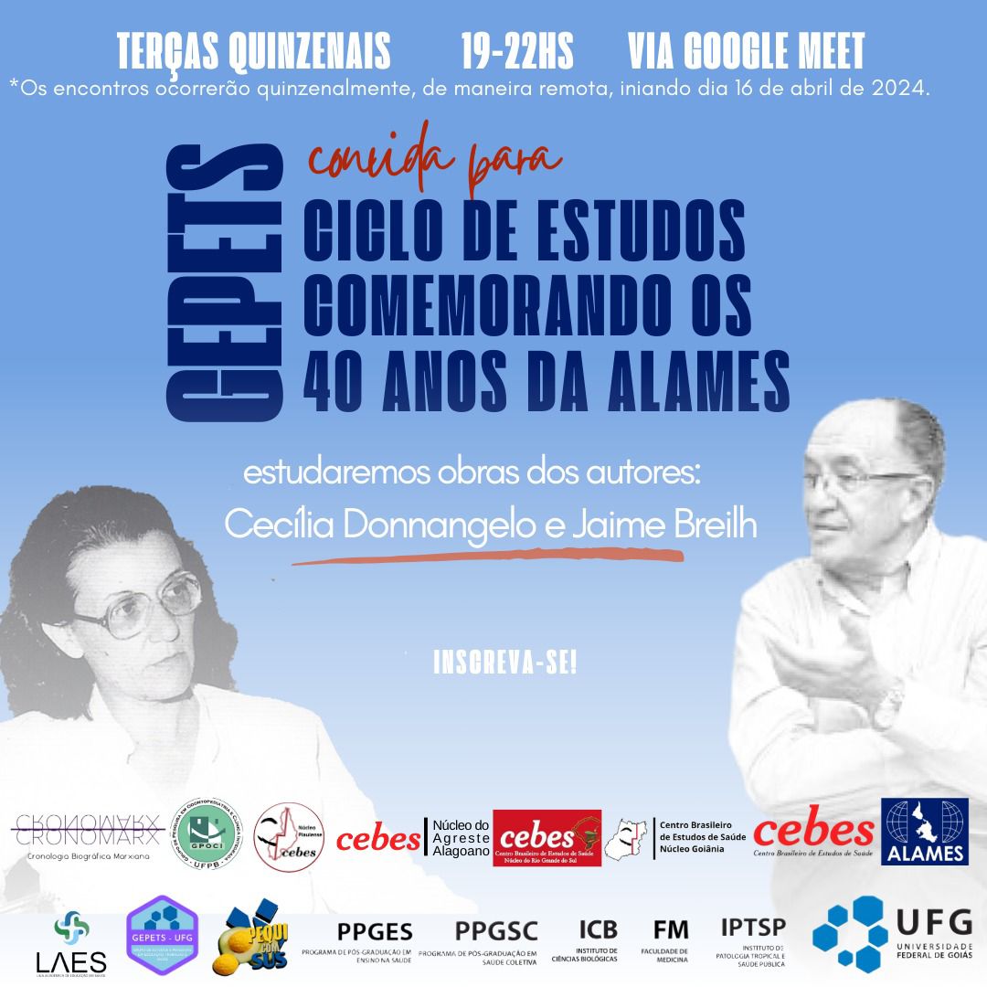abr 10 2024 Núcleo Goiás do Cebes convida para o ciclo de estudos em comemoração dos 40 anos da ALAMES