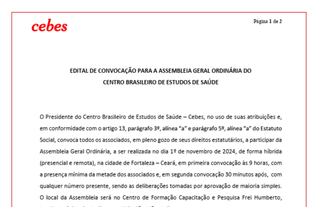 Votação acontecerá em 1º/11/24, em formato híbrido (presencial e online)