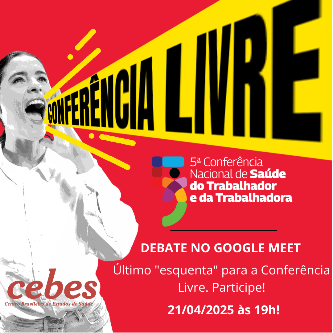 Evento online é o 5º encontro preparatório para a Conferência Livre de Saúde do Trabalhador e da Trabalhadora