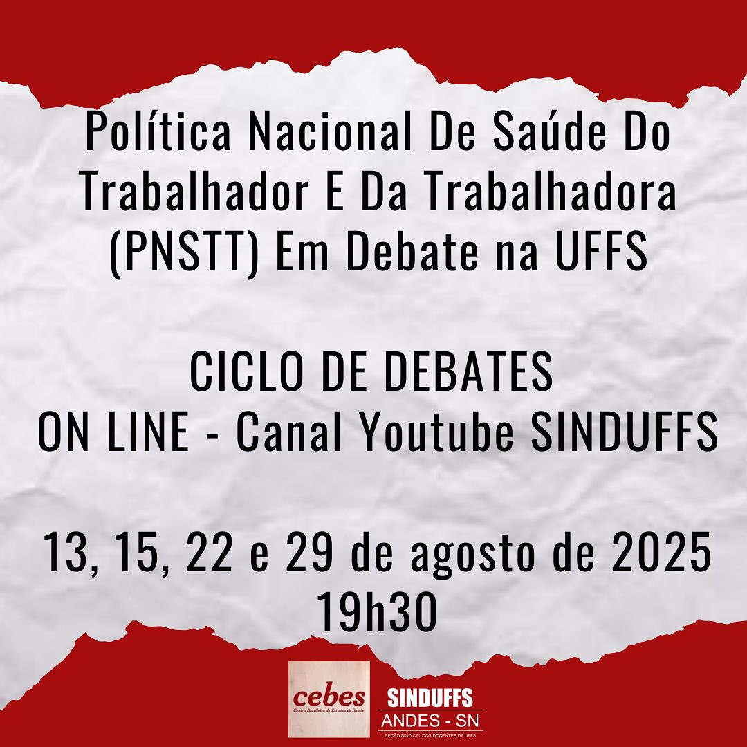 SINDUFFS com apoio do CEBES convida para um ciclo de debates sobre a Política Nacional de Saúde do Trabalhador e da Trabalhadora