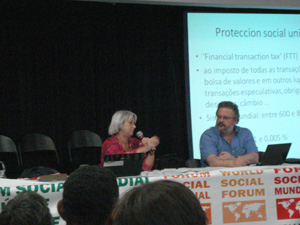 Momento de destaque mereceu a apresentação da belga Francine Mestrum, do Global Social Justice, que defendeu que a proteção social universal seja um bem comum da humanidade, o que significa, dentre outros aspectos, em pensar os direitos humanos em uma dimensão coletiva, ou seja, proteger a vida social coletiva e não apenas o conjunto das vidas individuais. Argumentou ainda que é necessário uma luta mais decisiva contra a pobreza, propondo, inclusive, “declarar a pobreza ilegal”, ao mesmo tempo em que denuncia que na Europa atual, por meio das políticas neoliberais, há uma produção permanente de pobreza, por meio da precarização ou flexibilização do trabalho e da privatização dos sistemas de saúde e de seguridade social.