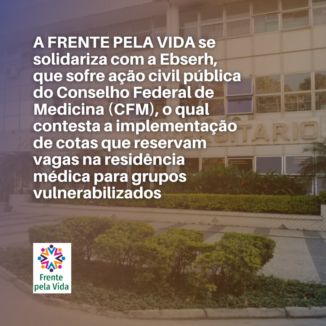 A FRENTE PELA VIDA se solidariza com a Ebserh, que sofre ação civil pública do Conselho Federal de Medicina (CFM), que contesta a implementação de cotas que reservam vagas na residência médica para grupos vulnerabilizados.