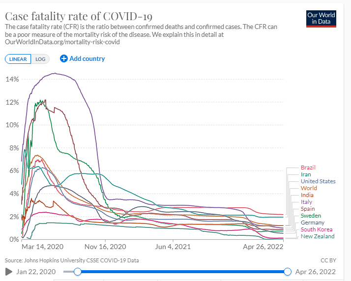 A letalidade ou Risco de morrer por COVID-19 no Brasil após receber o diagnóstico confirmado é o mais alto do mundo – 2,9%. O risco médio (case-fatality rate) do mundo é 1,2%. A Alemanha tem 0,56%.