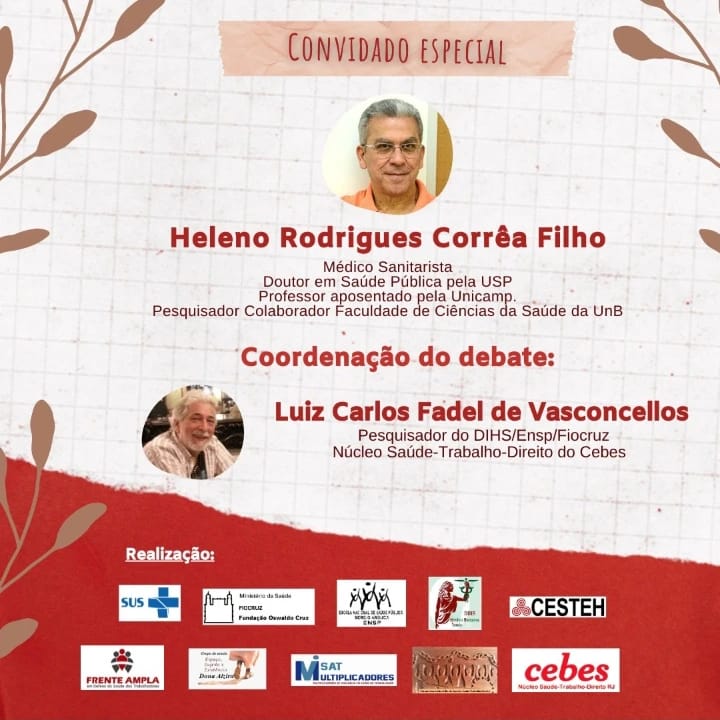 Coordenação do debate: Luiz Carlos Fadel de Vasconcelos, pesquisador do DIHS/Ensp/Fiocruz Núcleo Saúde-Trabalho-Direito do Cebes