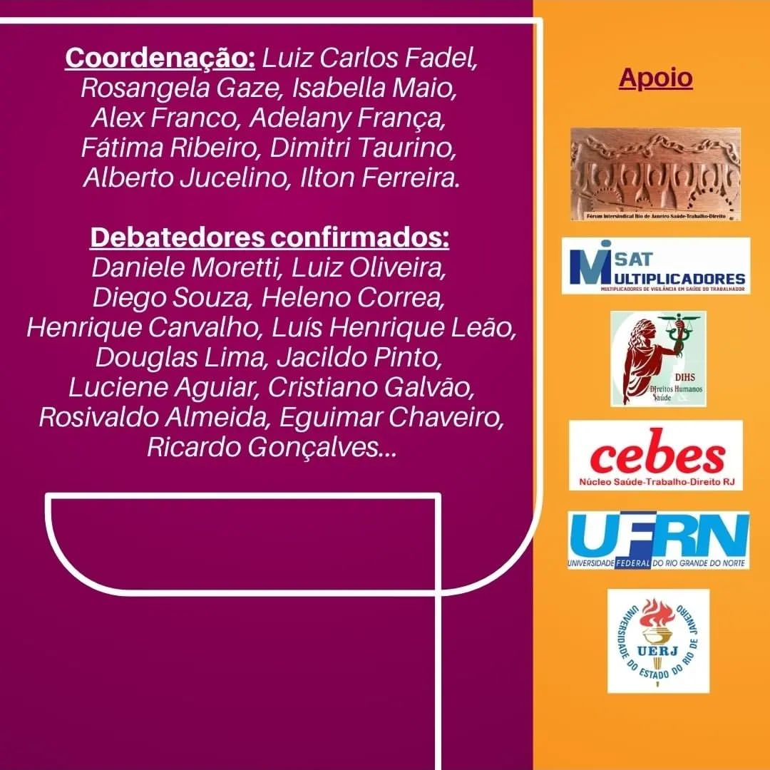 – 2º Encontro: 18/10/2024 de 14h às 18h – O direito aplicado à ST é suficiente para evitar o adoecimento e a morte no trabalho?
