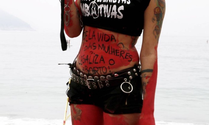 Manifestantes pedem legalização do aborto na orla de Copacabana