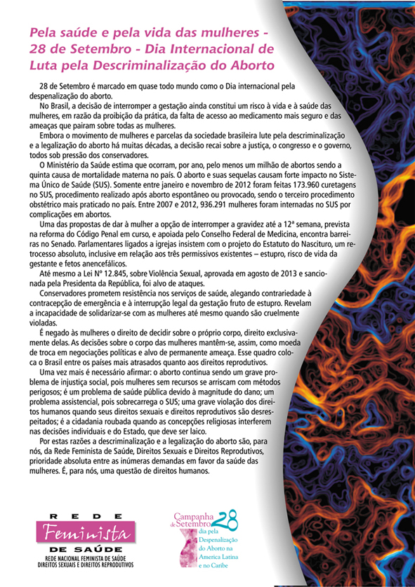 Nota da rede feminista sobre a luta pela despenalização do aborto