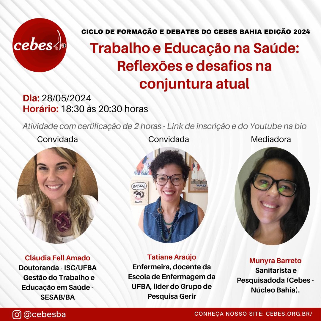abr 8 2024 Núcleo Saúde-Trabalho-Direito do Cebes promove a conversa ‘Ouvindo o ensurdecedor som do silêncio’
