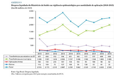 O objetivo desta nota técnica é apresentar o gasto federal com vigilância em saúde no período de 2010 a 2019 e discutir a necessidade de reforço do orçamento do Ministério da Saúde (MS) para esta área, considerando a centralidade do papel deste ministério não só para a coordenação do Sistema Nacional de Vigilância Epidemiológica (SNVE), mas também para todas as ações e serviços de vigilância em saúde.