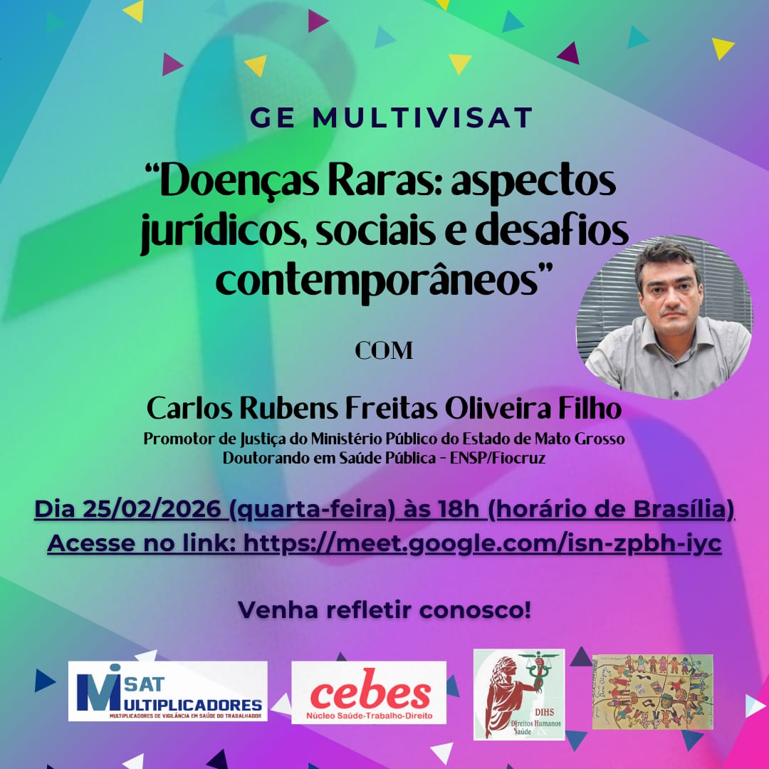 Núcleo Saúde-Trabalho-Direito promove o debate virtual “Doenças Raras: aspectos jurídicos, sociais e desafios contemporâneos” com Carlos Rubens Freitas Oliveira Filho, Promotor de Justiça do Ministério Público do Estado de Mato Grosso, doutorando em Saúde Pública – ENSp/Fiocruz.