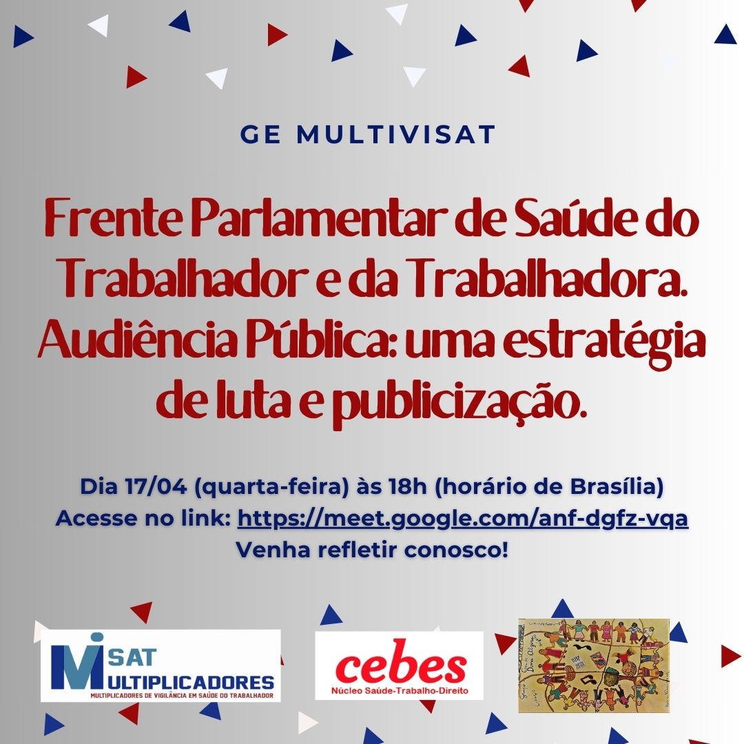 Participe da conversa promovida pelo Núcleo Saúde-Trabalho-Direito/CEBES em parceria com o GE MULTIVISAT no dia 17 (quarta) às 18h. O tema será a “Frente Parlamentar de Saúde do Trabalhador e da Trabalhadora” e como usar as audiências públicas como forma estratégia de luta e publicização de pautas.