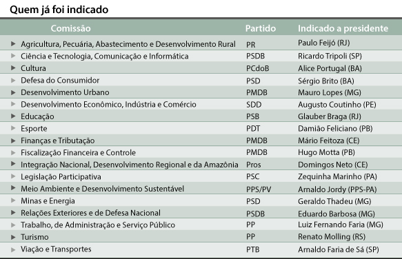 Partidos já divulgaram os indicados para presidir as 22 comissões da Câmara