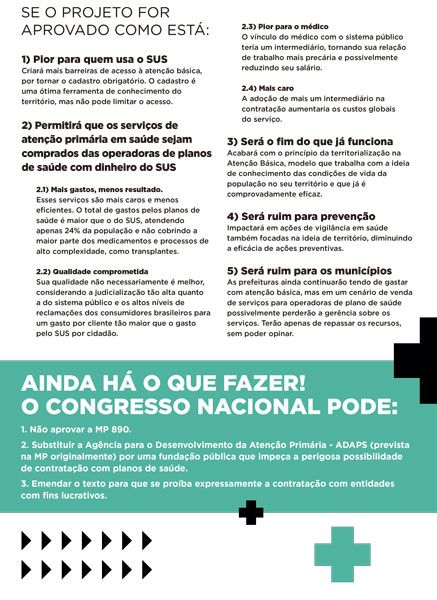 Criará mais barreiras de acesso à atenção básica, por tornar o cadastro obrigatório. O cadastro é uma ótima ferramenta de conhecimento do território, mas não pode limitar o acesso.