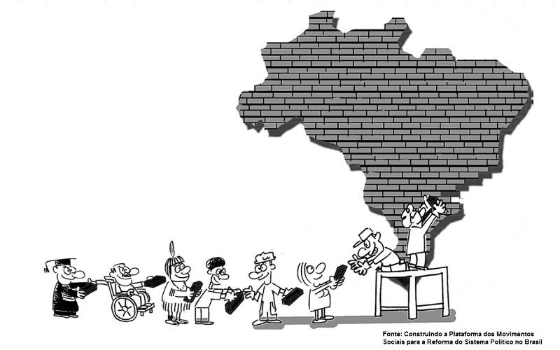 Junte-se aos movimentos sociais que se mobilizam por uma Reforma do Sistema Político. Uma reforma ampla, popular, democrática e que possibilite a participação da população nas decisões políticas e não apenas nos momentos eleitorais. Queremos uma nova forma de se pensar e fazer política. Estamos convidando você a entrar nesta Campanha, doando uma charge ou desenho sobre um dos seguintes temas: