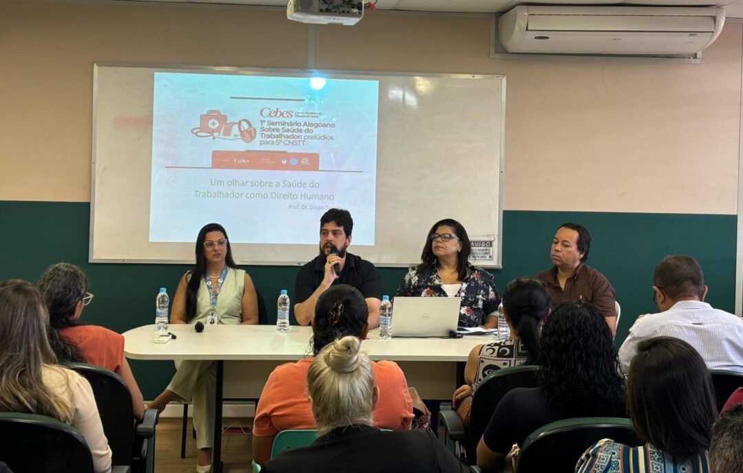 Continuando os preparativos para a Conferência Nacional, o Núcleo do Centro Brasileiro de Estudos da Saúde (Cebes) organizou, na quarta-feira,19, Seminário Arapiraquense de Saúde do Trabalhador: prelúdios da 5ª Conferência Nacional de Saúde do Trabalhador e da Trabalhadora (CNSTT). O evento ocorreu no campus Universidade Federal de Alagoas (UFAL). O evento foi organizado pelo Núcleo Cebes no Agreste/AL, com apoio da Comissão Intersetorial de Saúde do Trabalhador e da Trabalhadora (CISTT) de Arapiraca, da Secretaria Municipal de Saúde (SMS), do Programa de Pesquisa e Extensão de Saúde do Trabalhador e Emancipação Humana (Prosateh) da UFAL e do Projeto de Extensão Direito à Saúde e o SUS (Proedss/UFAL).